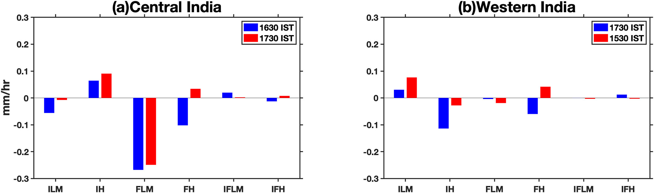 Enhanced frequency (intensity) of heavy rainfall events later (earlier) in the afternoon is responsible for the delay (advance) in the mean diurnal phase over central (western) India.