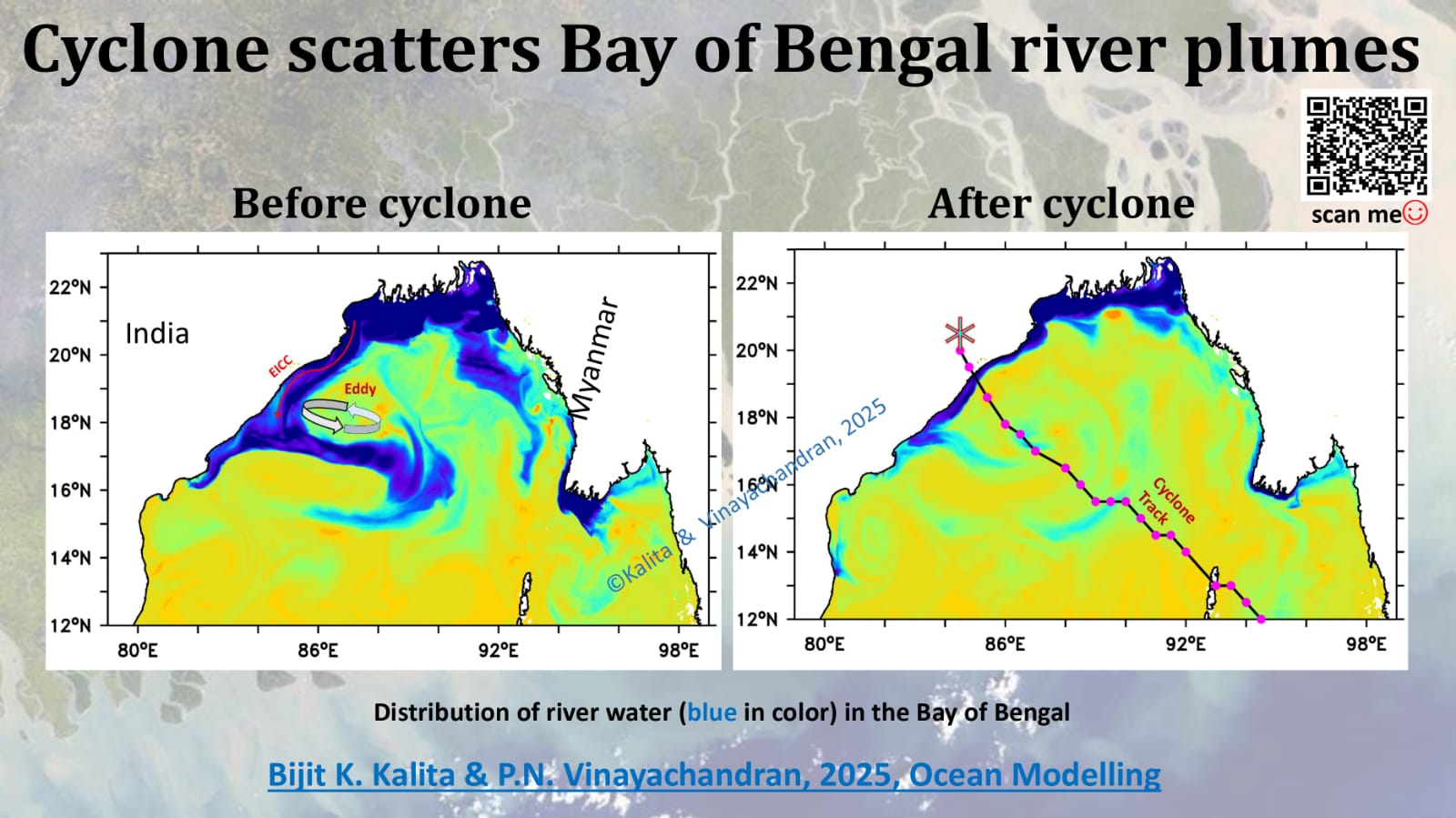 - Bijit K. Kalita, P.N. Vinayachandran (2025), Bay of Bengal river plume response to a tropical cyclone in high-resolution numerical simulations, Ocean Modelling, 194, 102498, ISSN 1463-5003, https://doi.org/10.1016/j.ocemod.2025.102498.